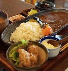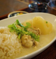 さてと只今ランチ中!と今日の日替わり久しぶりは「じゃがいもと手羽元のスープごはん」!ココナツミルクとナンプラーの南国風味のやさしいスープ!もちろんパクチーがアクセント!お昼まだ間に合うよ!(笑)(お)