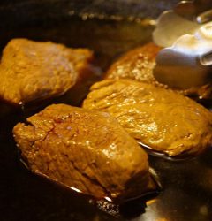 じゃんじゃんいくよ!牛肉メニュー!今夜初登場は「牛肉の自家製塩麹漬け焼き」!塩麹に一晩漬けただけだけど、それでこの旨味とやわらかさ!やさしい塩味、じゅうっと焼いたらつまみにヨシ!おかずにヨシ!(お)