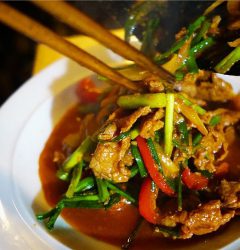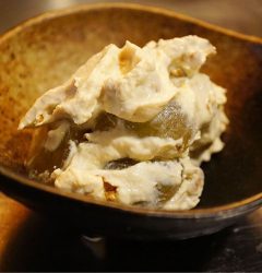 昨夜新登場はこちらもお肉!「豚スペアリブと揚げ里芋の黒酢煮」!いや、骨付きスペアリブの旨味に旬のねっちり里芋のおいしさ!黒酢で煮あわせて、夏の疲れにほっと効きます、おいしいね!(お)