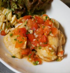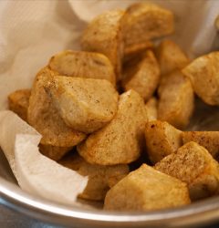 さてと明日のお昼時日替わりのひとつがこちら!「和風サルサチキン」!前は鶏肉をソテーしてたんですけど、お弁当以来さっくり揚げてオリジナルの和風サルサソースでさっぱりスパイシーにいただきますよ!(お)