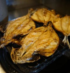 今回はなにげに人気じゃん!と「香味野菜と一夜干しのさっぱりサラダ」!こんがりアジの一夜干しを焼いておる次第でございます…って、このままデモマジうまいよね!(笑…いや、だからサラダだって!)(お)