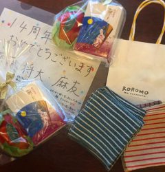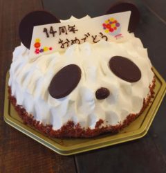14周年にお客様から色々と頂き物をしておりまして、ありがとうございます!なかなか全てをご紹介できないのですが、こちらはパンダのケーキ!顔を切ってしまうのがもったいないですね!(麻)