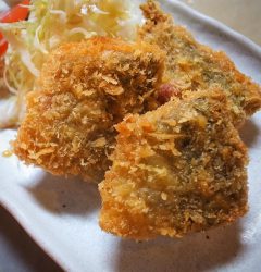 さてと今夜のおススメ!ビールのお供は「アジの梅しそフライ」!ぴかぴかアジにさっぱり梅しそあわせたら、からり揚げたてあつあつ!ウスターソースでさくさくいこう!ワタクシもぜひご一緒したいです!(笑)(お)