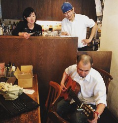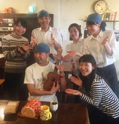 okayan、自分への誕生日プレゼントはギターの調音機?とピック?だそうです。届いたそばからそれはそれは楽しそうなokayan。そしてそれを覗き込む2人の興味津々具合が愉快です。(うめ)
