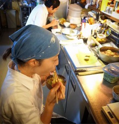 あー、おかげさまで大忙しでした節分は海苔巻きの夜!と、最後に1本だけ残った当店オリジナル春の恵方巻きをみんなで小さくいただいてお疲れさんと、いい夜でした、ありがとね!(お)