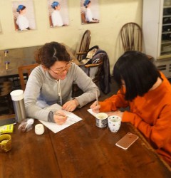 というわけでウメさんともっちゃんに描いてもらった鬼の絵は、ワタクシの手によりちゃちゃっと今夜の恵方巻きのメニューカードになりました!(笑)みなさんのご来店お待ちしておりますっ!(お)