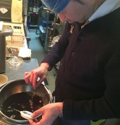 さてといよいよ明日から輝け!当店第13回クリスマスディナー!ということで、金曜の深夜は閉店後、限定入荷の特別なワインを試飲中の店長ミヤザキはこの笑み!(笑)ご来店のみなさんお見逃しなく!(お)
